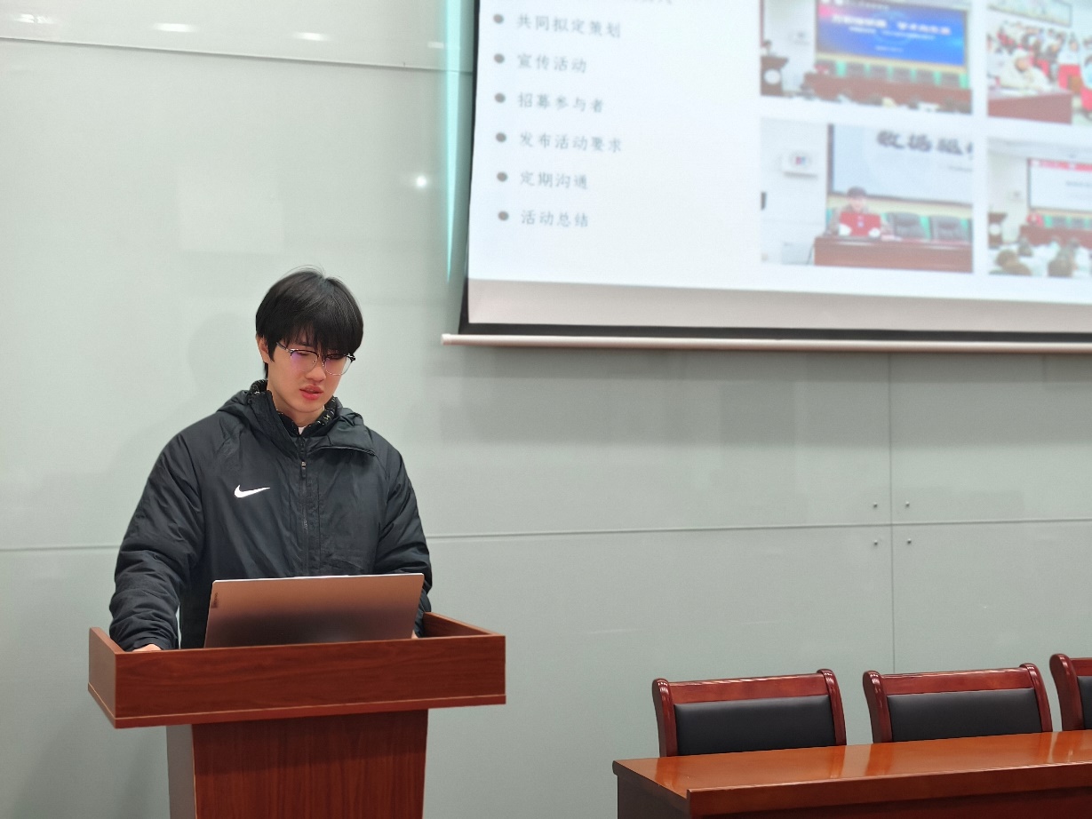 社会实践部部长张正澍介绍了部门在促进就业实践、拓展校际交流、践行服务宗旨等方面的扎实举措。本学期,部门累计举办各类特色活动7项,发布就业相关推送23篇,开展就业指导讲座1场,全方位护航研究生职业发展。成功申报并承办校级“万彩绘研路,学术向东吴”系列活动之“研途引航,筑梦未来”经验交流会,以及“我为同学做实事”之“科技有情・义诊随行”电脑义诊志愿服务活动,切实解决同学们的实际需求。同时,实践部积极参与3项院际互动活动,并组织研会内部骨干开展赋能培训,以进一步提升团队专业能力与协作水平。
